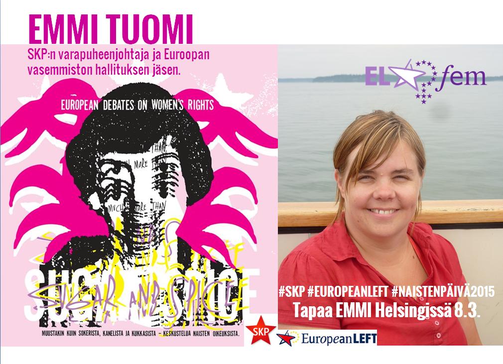Siihen tarvitaan tasa-arvoliikettä, feminismiä ja naisasianaisia. Siihen tarvitaan myös miehiä. Siihen tarvitaan radikaalia vasemmistoa, liikettä ja aatetta, joka vaatii kaikkien ihmisten tasavertaisuutta, sukupuoleen katsomatta. Naisten asemassa on paljon korjattavaa eikä tätä tule väheksyä. Ihmisten enemmistön asemassa on paljon korjattavaa. Naisia tarvitaan työssä ja taistelussa. Niin tarvitaan myös miehiä. Tarvitaan yhteistyötä ja meitä kaikkia.