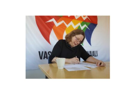 <p>Suomen kommunistisen puolueen (SKP) puheenjohtaja JP (Juha-Pekka) Väisänen ja keskuskomitean jäsen Tiina Sandberg osallistuvat Euroopan vasemmiston (EV) hallituksen kokouksee