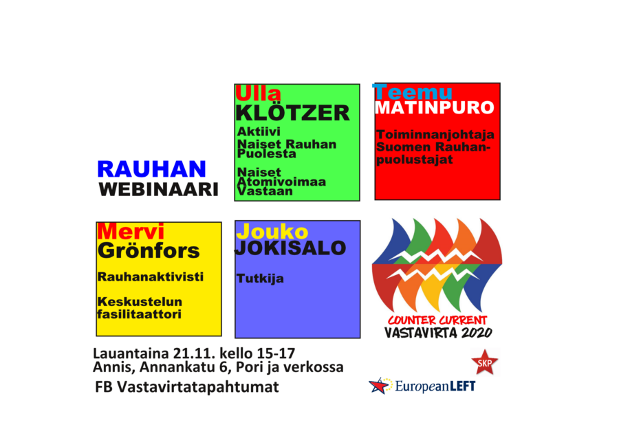 Eri kansalaisyhteiskunnan järjestöt, aktivistit, taiteilijat ja yksittäiset toimijat yhdessä Demokraattisen sivistysliitto (DSL), Euroopan vasemmiston (EV), Suomen kommunistisen puolueen (SKP) ja Tiedonantaja-sanomalehden kanssa avaavat syksyllä ja talvella 2020 keskustelua ja vastavirtaista ajattelua rauhasta, kulttuurista ja ympäristöstä.