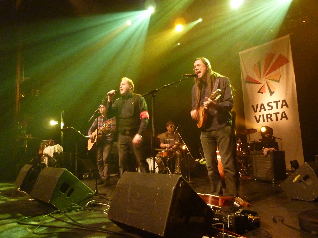 Lauantai-ilta alkoi Vastavirtaan-konsertin poliittisilla lauluilla, jatkui rockin ja rapin kautta globaaliin kansanmusiikkiin suoraan Itä-Helsingistä. Vastavirtafestivaalien DigiCultStudiota saattoi seurata myös nettitelevisiosta.