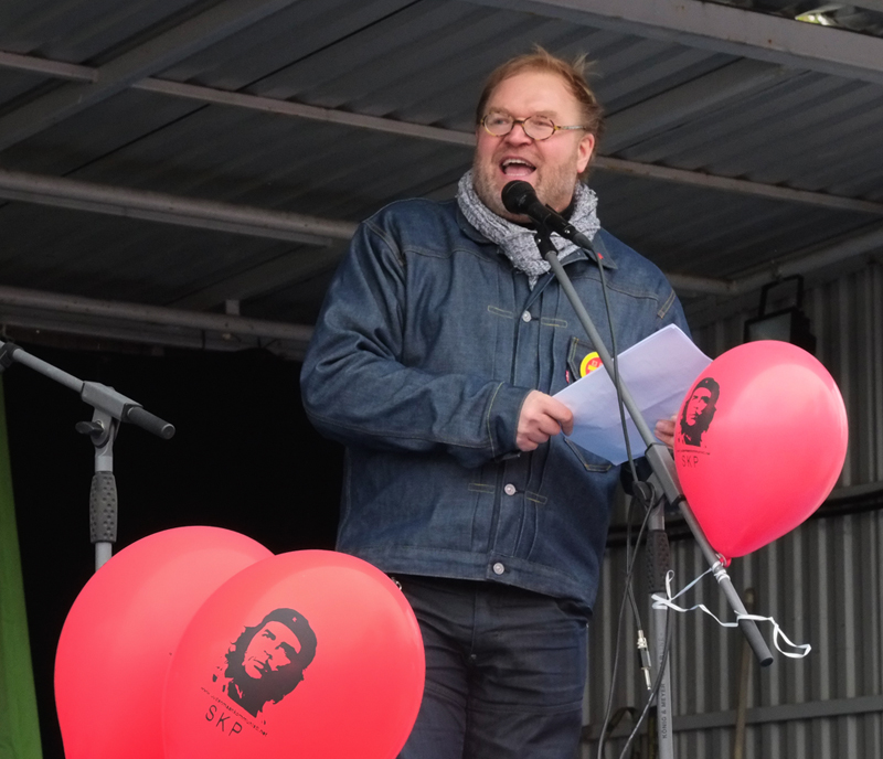 Tämä vappulava on paras paikka haastaa koko suomalainen ja koko eurooppalainen vasemmisto uuden yhteiskunnan rakenteiden uudistustyöhön. On aika ymmärtää että kokoomuksen ja sen juoksupoikien johdolla rikkaat rikastuu ja köyhät köyhtyy. Tästä on faktaa ja tästä on näyttöä. On aika ymmärtää että kapitalistien johdolla tulojako tapahtuu pankit ja bisnes edellä. Tästä on faktaa ja tästä on näyttöä.