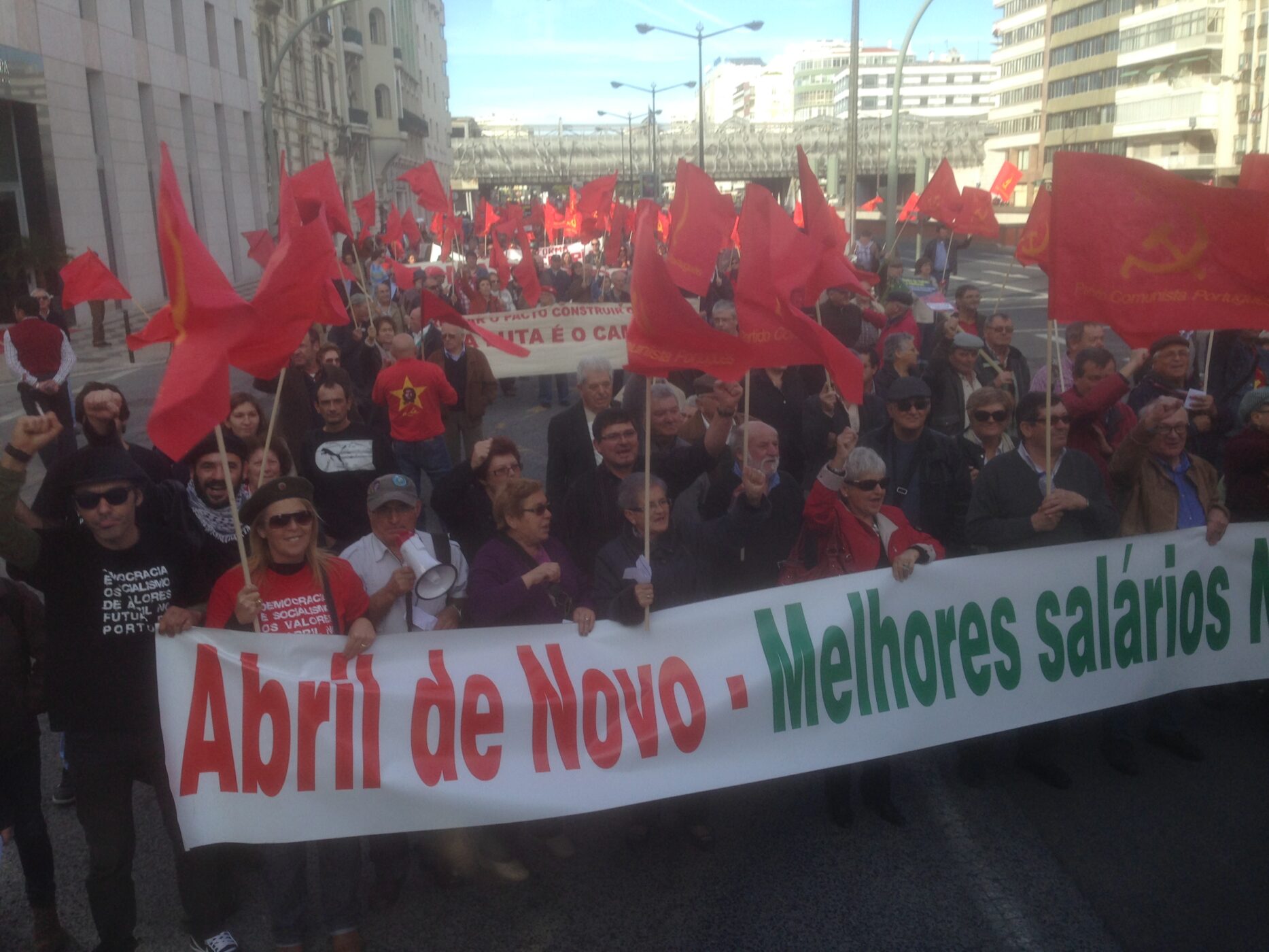 "Parempaa palkkaa - Melhores salarios" Portugalin kommunistisen puolueen aktiivit mielenosoituksessa 11.11.2013 Lissabonissa