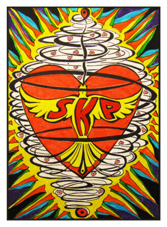Tänä vuonna SKP:n vappukuvan ja sen pohjalta tehtävän julisteen, rintamerkin ja t-paidan on suunnitellut helsinkiläinen taiteilija, aktivisti ja feministi Viva Granlund.
