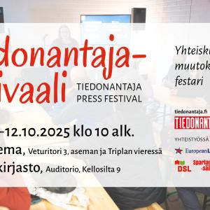 Festival of social change, activism, and cooperation, Tiedonantaja Press Festival, will take place at the Peace Station (Rauhanasema) in Pasila, Helsinki, on Saturday and Sunday, October 11–12! On Saturday, October 11, in addition to the Peace Station, events will also be held in the auditorium of the Pasila Library!