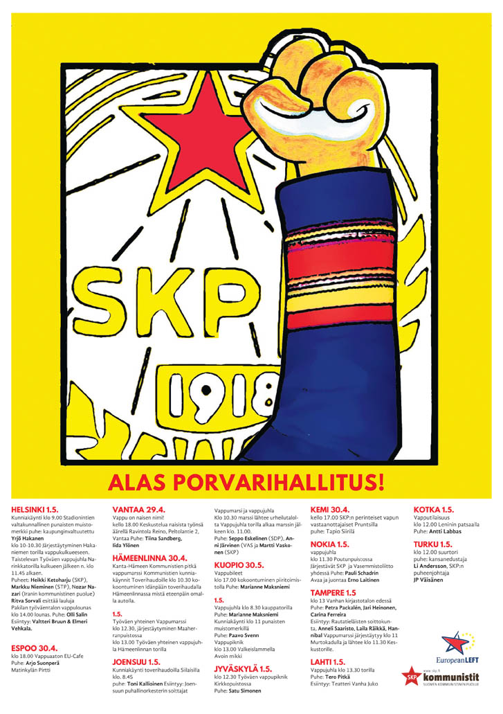 SKP:n puheenjohtaja JP (Juha-Pekka) Väisänen puhuu Vappuna Turussa SKP:n ja Vasemmistoliiton yhteisessä tilaisuudessa ” Aatteen ja ay-liikkeen vappu”. Vasemmiston puhujana tilaisuudessa on kansanedustaja Li Andersson