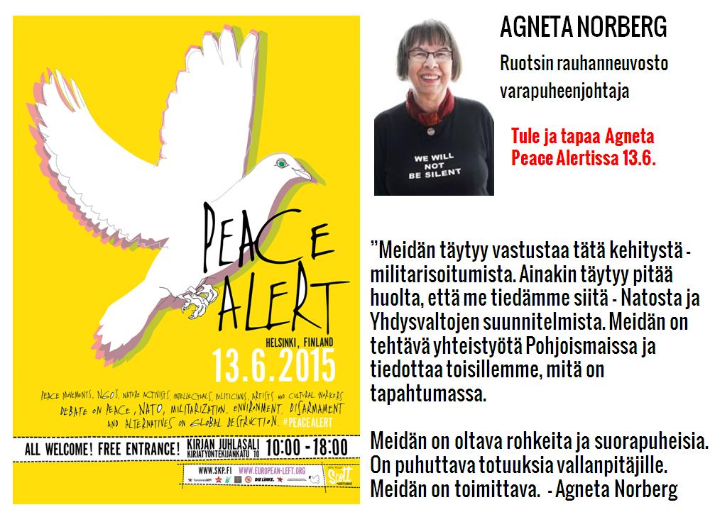 Ruotsin rauhanneuvosto mukaan Peace Alertiin