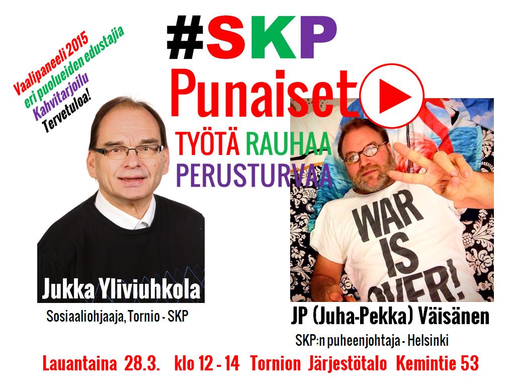 Lauantaina 28.3. ja sunnuntaina 29.3. SKP:n puheenjohtaja JP Väisänen on mukana vauhdittamassa eduskuntavaalityötä tekeviä pohjoisia ehdokkaita. SKP:n tapahtumat tulevana viikonloppuna ja SKP:n ehdokkaat tavattavissa yhdessä puheenjohtaja Väisäsen kanssa seuraavasti: