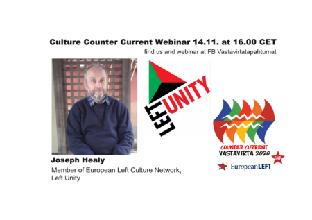 Aktivisti ja Euroopan vasemmiston kulttuuriverkoston jäsen Joseph Healy avaa keskustelua taiteilijoiden päivittäisestä taistelusta koronavirusta ja köyhyyttä vastaan.