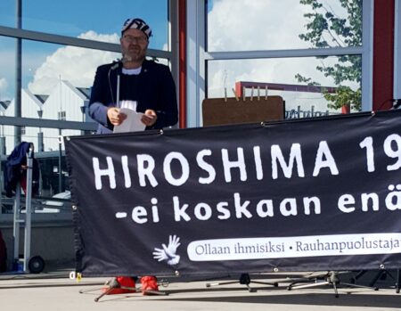<p>SKP:n puheenjohtaja rauhanaktivisti <strong>JP Väisänen</strong> väitti Kemissä Hiroshimapäivän puheessaan että ulkoministeri Timo Soini ulko- ja turvallisuuspoliittisen