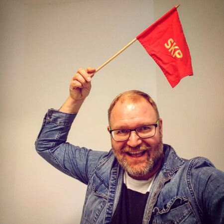 <p>Vappupuheessaan Nokialla ja Tampereella SKP:n puheenjohtaja <strong>JP (Juha-Pekka) Väisänen </strong>protestoi työministeri <strong>Jari Lindströmin </strong>työllisyyspol