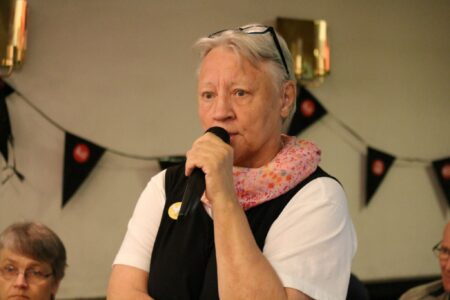 SKP:n varapuheenjohtaja Mervi Grönfors antoi kaiken tukensa hoitajien taistelulle paremmista palkoista ja työoloista SKP:n keskuskomitean kokouksessa 23.4.