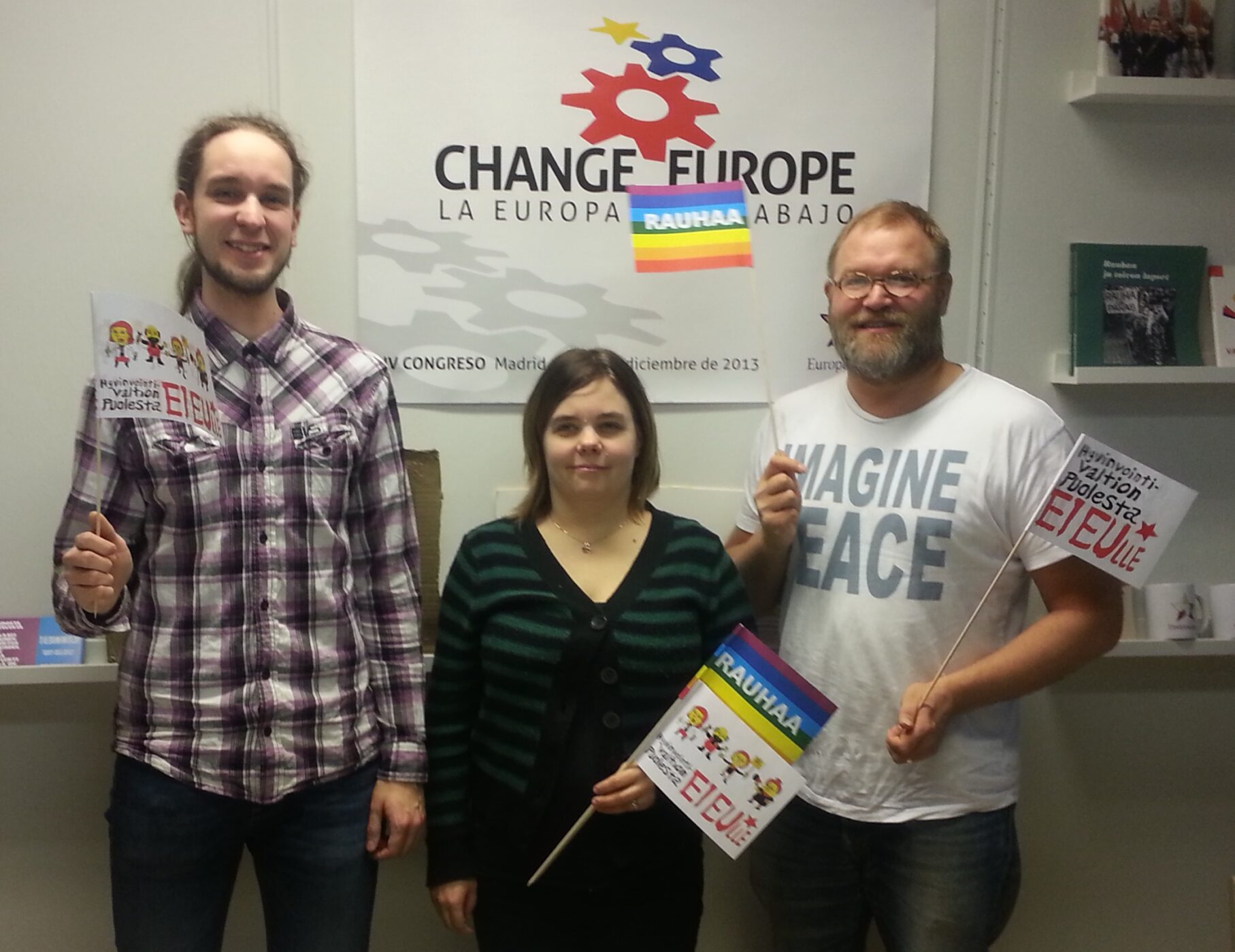 SKP:n varapuheenjohtaja Emmi Tuomi, pääsihteeri Heikki Ketoharju ja puheenjohtaja JP Väisänen kokoontuivat kansainvälisen naistenpäivän aattona 7.3. Helsingissä. Kollektiivi kävi innostunutta keskustelua EU-vaaliasetelmista ja gallupeista. Viimeisen PollWatch2014 mielipidemittauksen mukaan kommunististen, vasemmistososialististen ja punavihreiden puolueiden edustajien muodostama GUE/NGL-ryhmä olisi nousussa EU:n parlamentin kolmanneksi suurimmaksi.