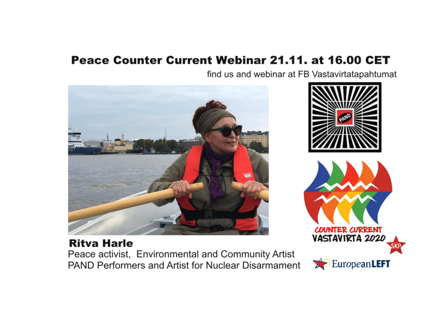 Ritva Harle – peace activist and artist is one of PEACE Counter Current webinar Speakers (21.11. at 16.00 O´clock CET). For Harle worldview is important tool for art and activism.