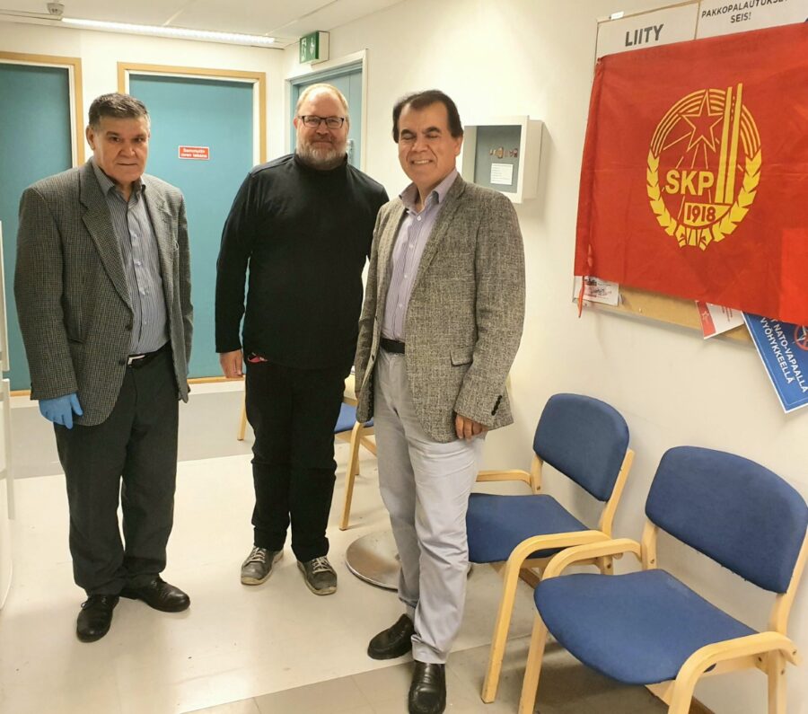 Suomen kommunistisen puolueen(SKP) puheenjohtaja JP (Juha-Pekka) Väisänen tapasi Kurdistanin työväen kommunistisen puolueen toverit Omar Baha:n ja Mustafa Bahir:in SKP:n toimistolla Helsingissä.